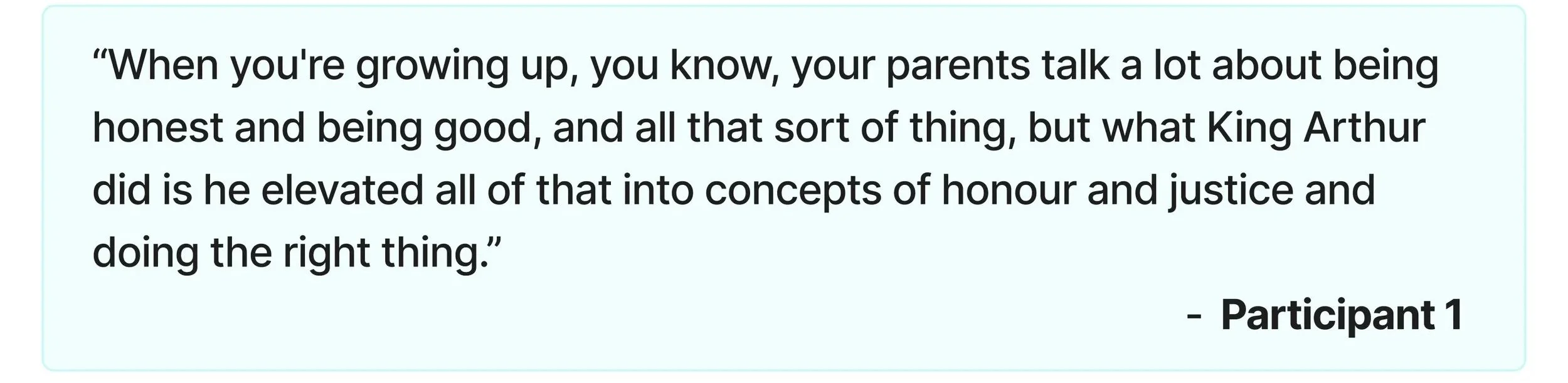Participant 3: 68-year-old Chinese man. Folklore changed his perspective on animals. Coming from a low-income Asian background, animal rights were not seen as a priority but rather as an important source of nutrition. These stories are able to bring the emotional impact of a non-human perspective without judgment on other cultures/people. When confronted by people from other cultures with different perspectives, individuals often feel defensive, as their beliefs often arise from a cultural need not understood by the other. When discussing the folklore from his own culture, it was interesting to see that many of the stories centred around emotion, collective action and self-control in behaviour in relation to wider society, as is the foundation of the language itself. He believed that these stories plant a seed to grow a non-selfish mindset and moral code. He believes that life is incredibly hard and that everyone suffers greatly. A strong moral code instilled in you when you’re young is the only way in which people are able to choose to behave less selfishly.