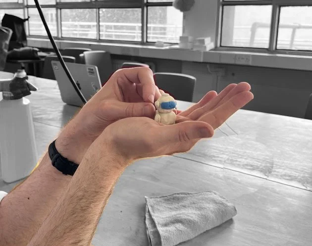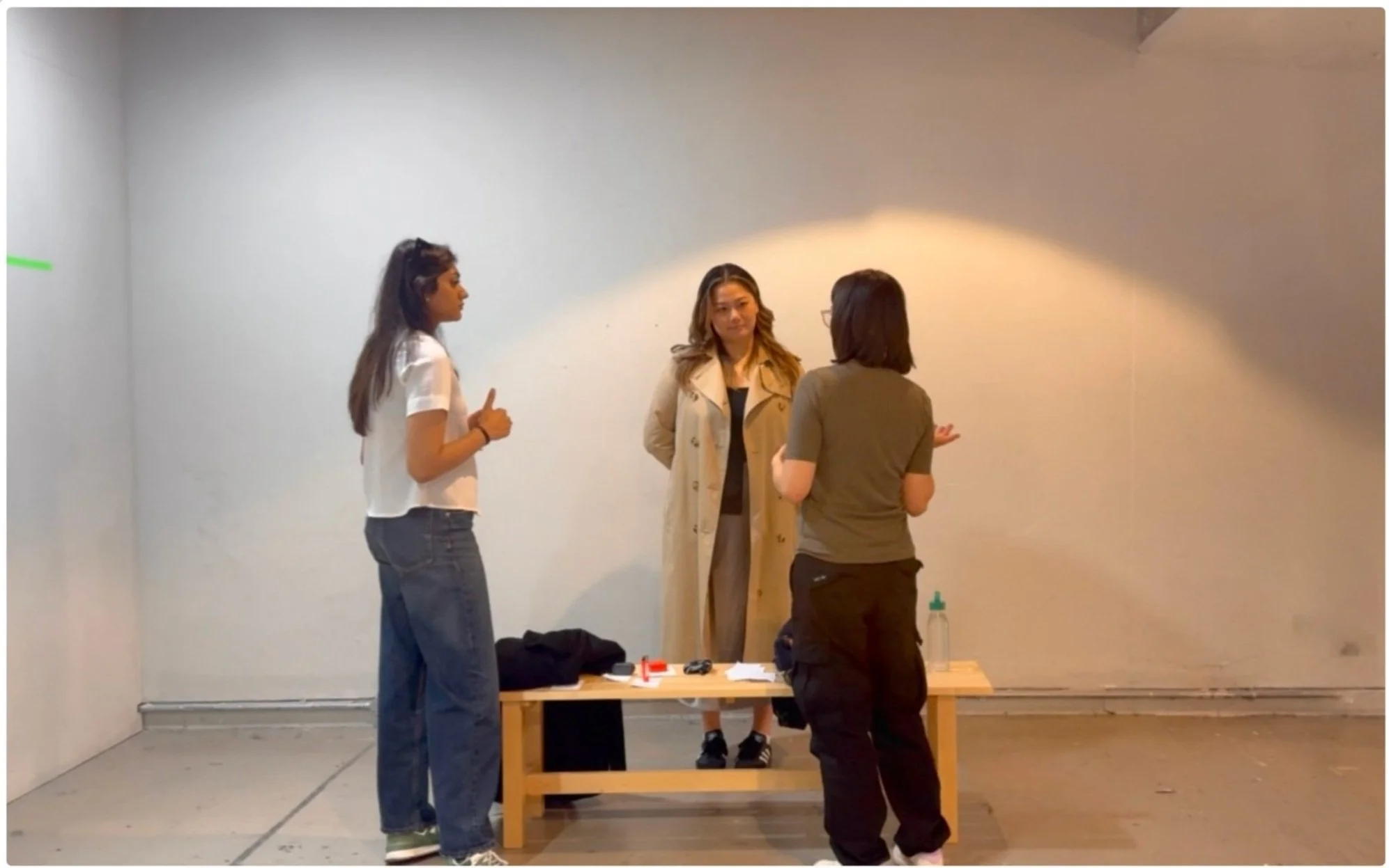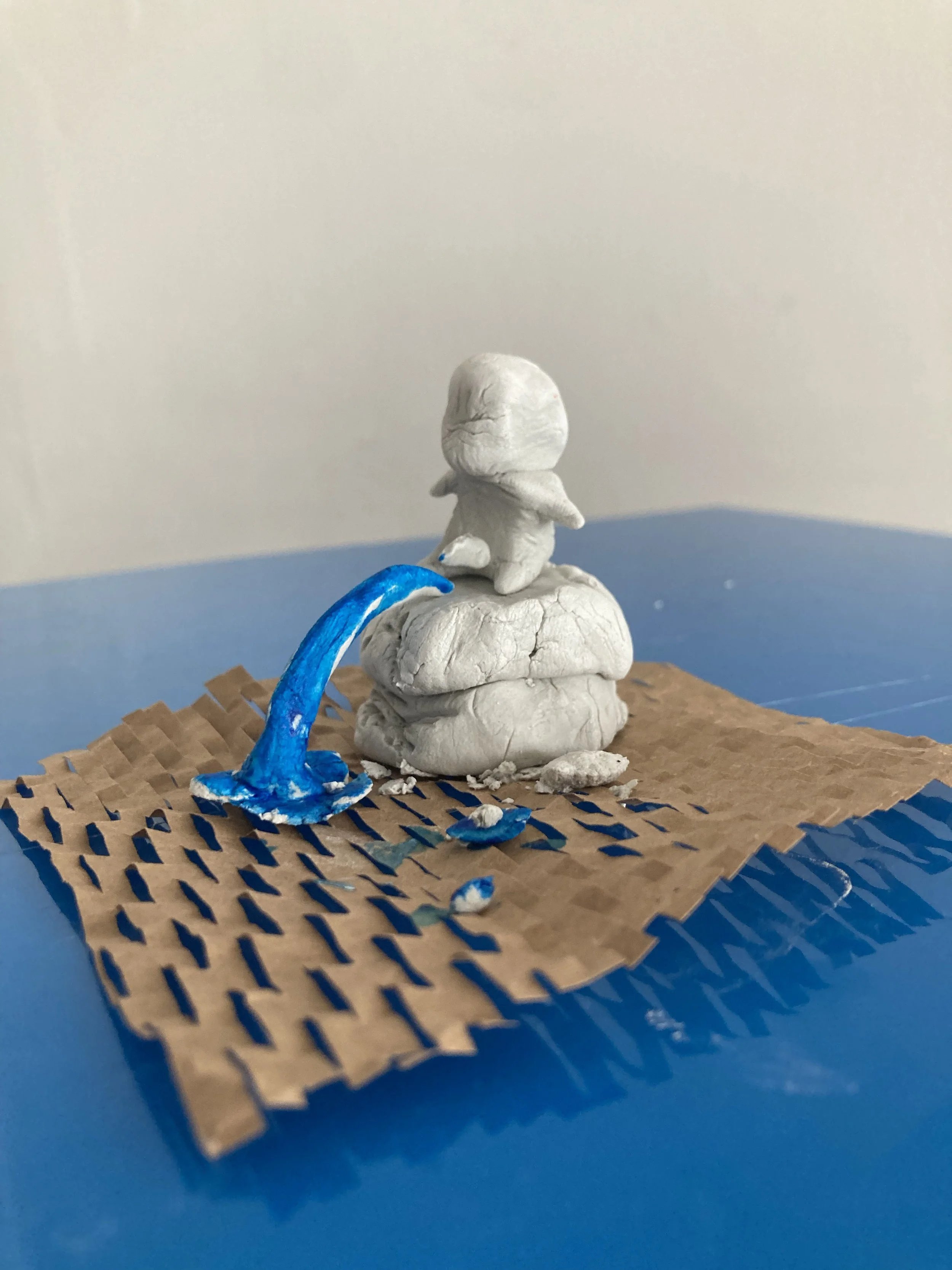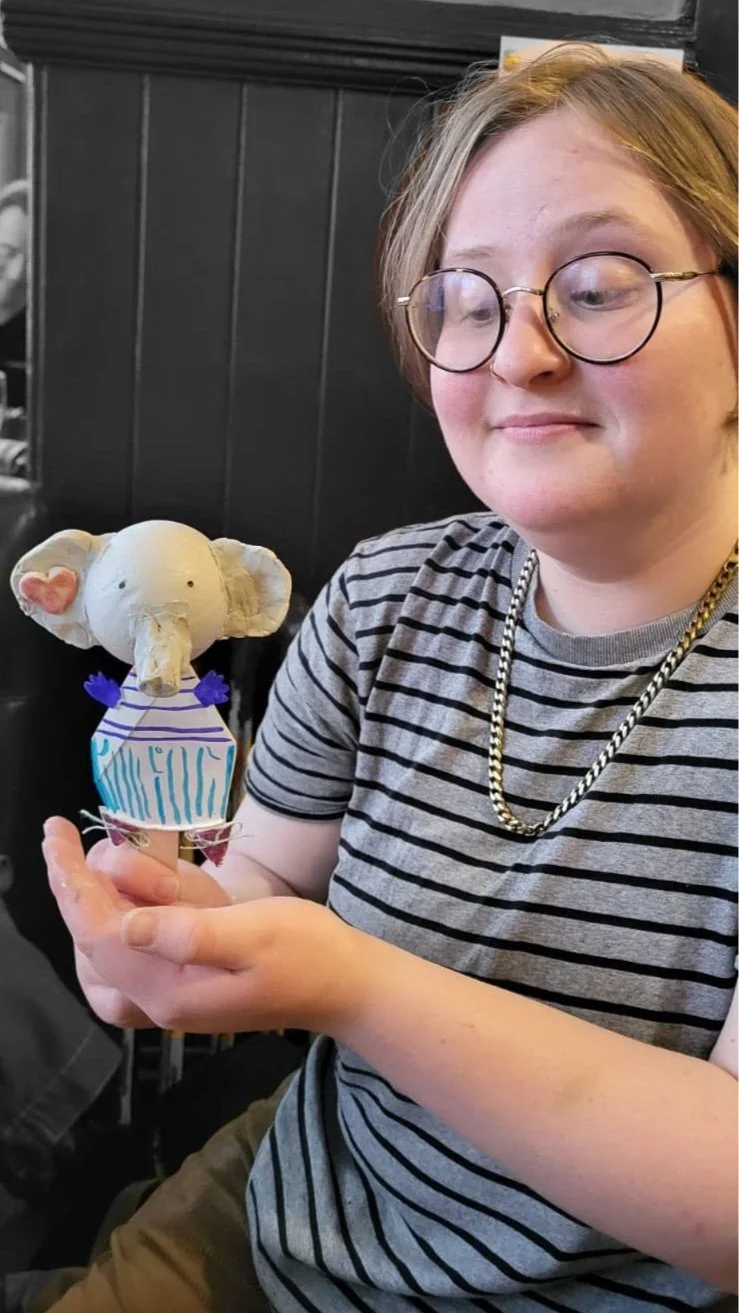 We ran a test with Alex to test the flow of the workshop and realised that having clay only would force people to work on a small scale, so we decided to expand our materials. Feedback was that the offboarding could be more in-depth. We also changed the running order of our process from (making model to telling story) to (telling story to making model) to encourage the participants to create something less representational and more imaginatively interwoven with the story being told. We repeated the test with more participants; three LCC students were conveniently sampled, as with Alex, which meant that these people were fairly creative and used to thinking/making artistic objects which other people might not. However, we found that the changes we made were successful and participants made more imaginative outcomes, told interesting and personal stories and had more performative interactions with the materials.