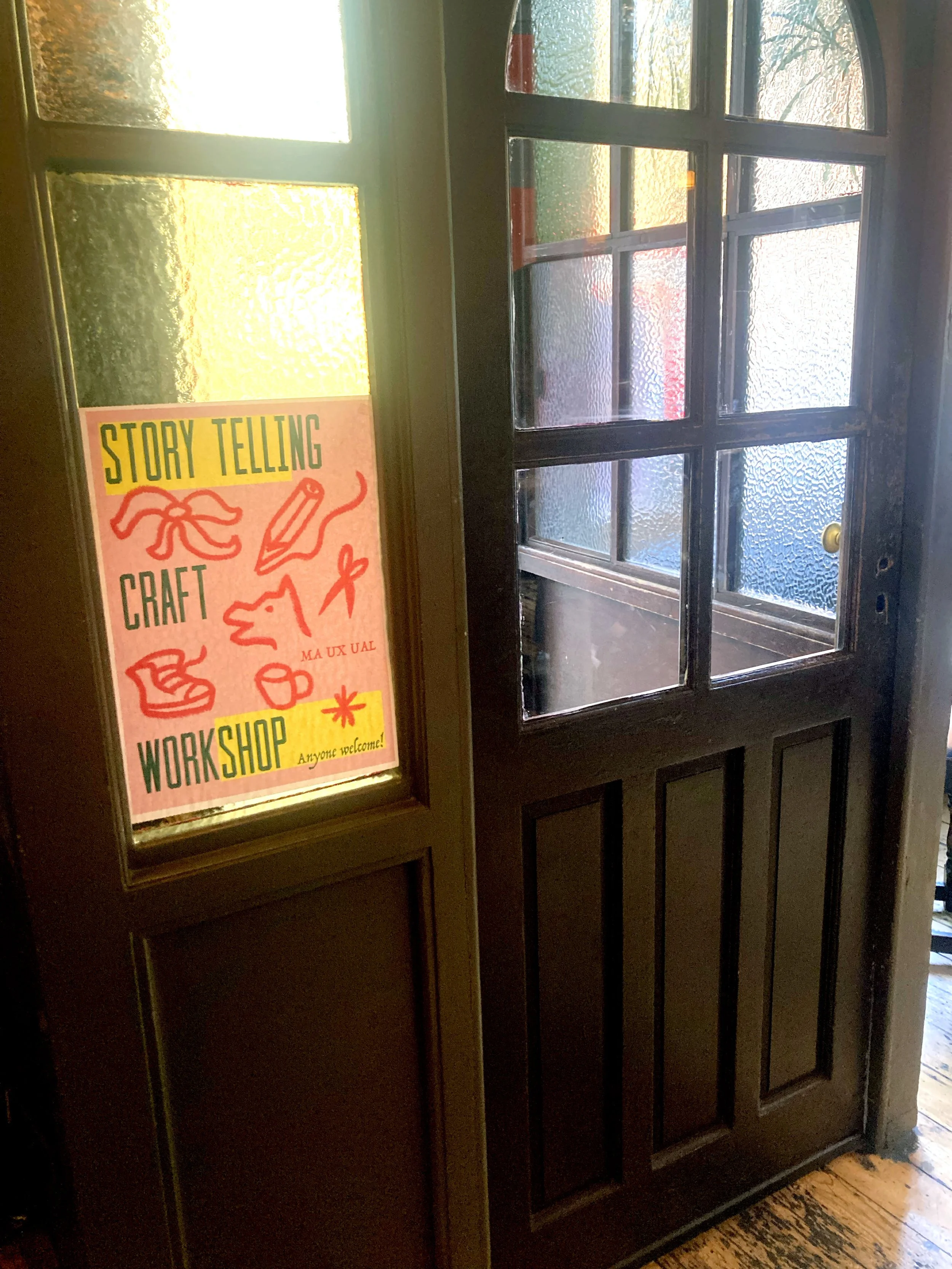 The bar staff were not as friendly and didn’t help us recruit this time. A few people who had agreed previously to attend pulled out, so we were left with only three participants who were conveniently sampled creatives and therefore were disposed to react positively to it, also knew each other and came from a similar background. Therefore, we had no cross-generational interaction and did not find out how strangers would react to sharing in the workshop. We did, however, encourage more collaborative interaction at the storytelling phase, which helped interpersonal involvement, although participants did want the workshop to go on longer, so if running it again, I would consider including more warm-up exercises.