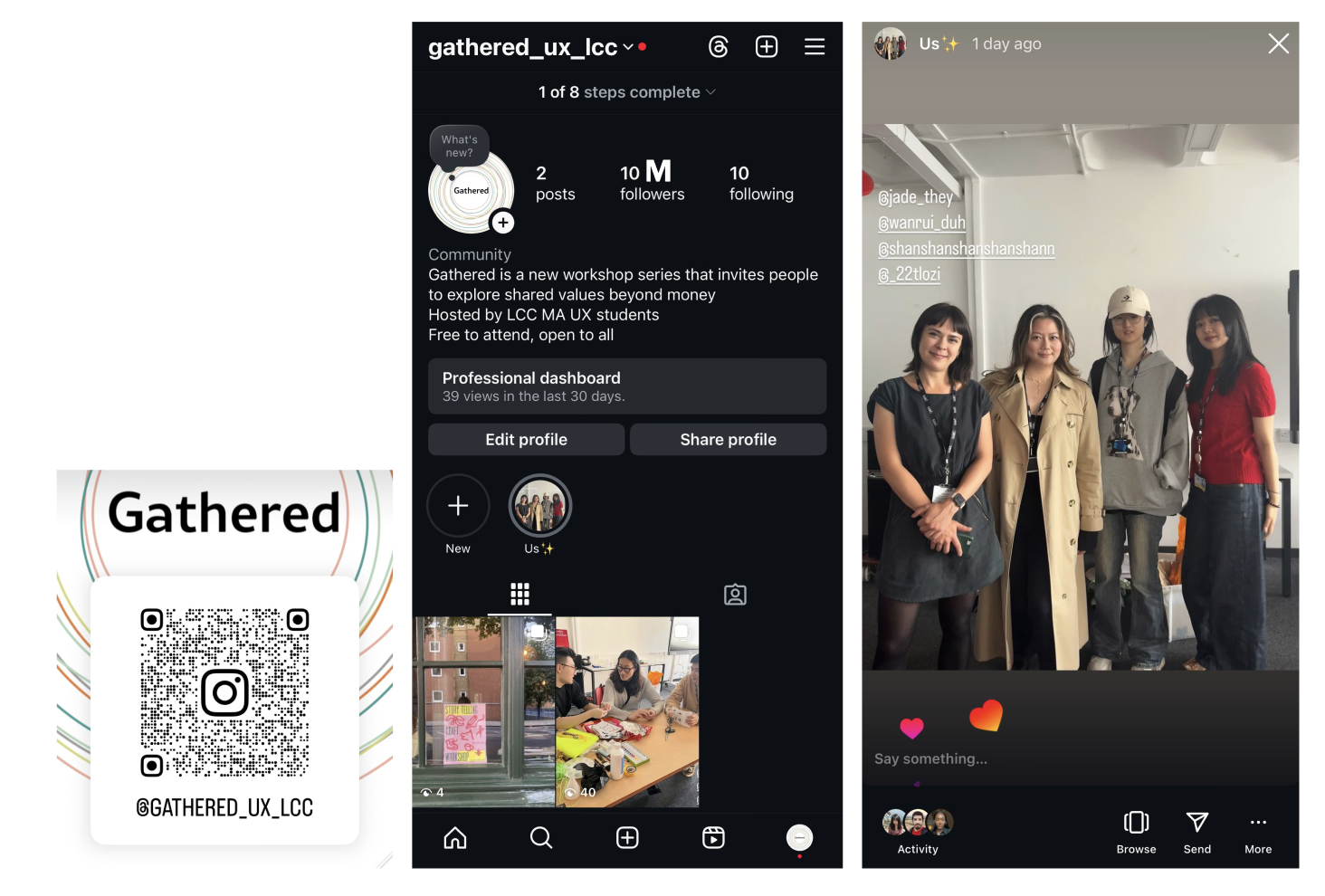 When we returned, our group decided to continue with markets. I looked more into the psychological perspectives on altruism and third spaces, but didn’t find any clear direction. After discussing our research, we decided to investigate further with some directed storytelling to fish out more interesting findings. We used the game We’re not really strangers as an interesting starting point where players ask prompts to spark deep, meaningful conversations. We put these posters around LCC and the local area to get some indirect responses from those uncomfortable being questioned, but we only got one response. Racheal, Wanrai, Yiyao, Zoe, and Shanshan interviewed participants, and we gave them free coffee to encourage conversation. We found that if you ask broad questions, you get vague/generic answers, and that the people at LCC all gave similar answers, typical of art students. We understood that the sample needs to be located somewhere more specific, i.e. a real market, as well as finding a more targeted line of inquiry. I suggested visiting the Princess May car boot in Dalston to conduct the interviews again with a better sample.