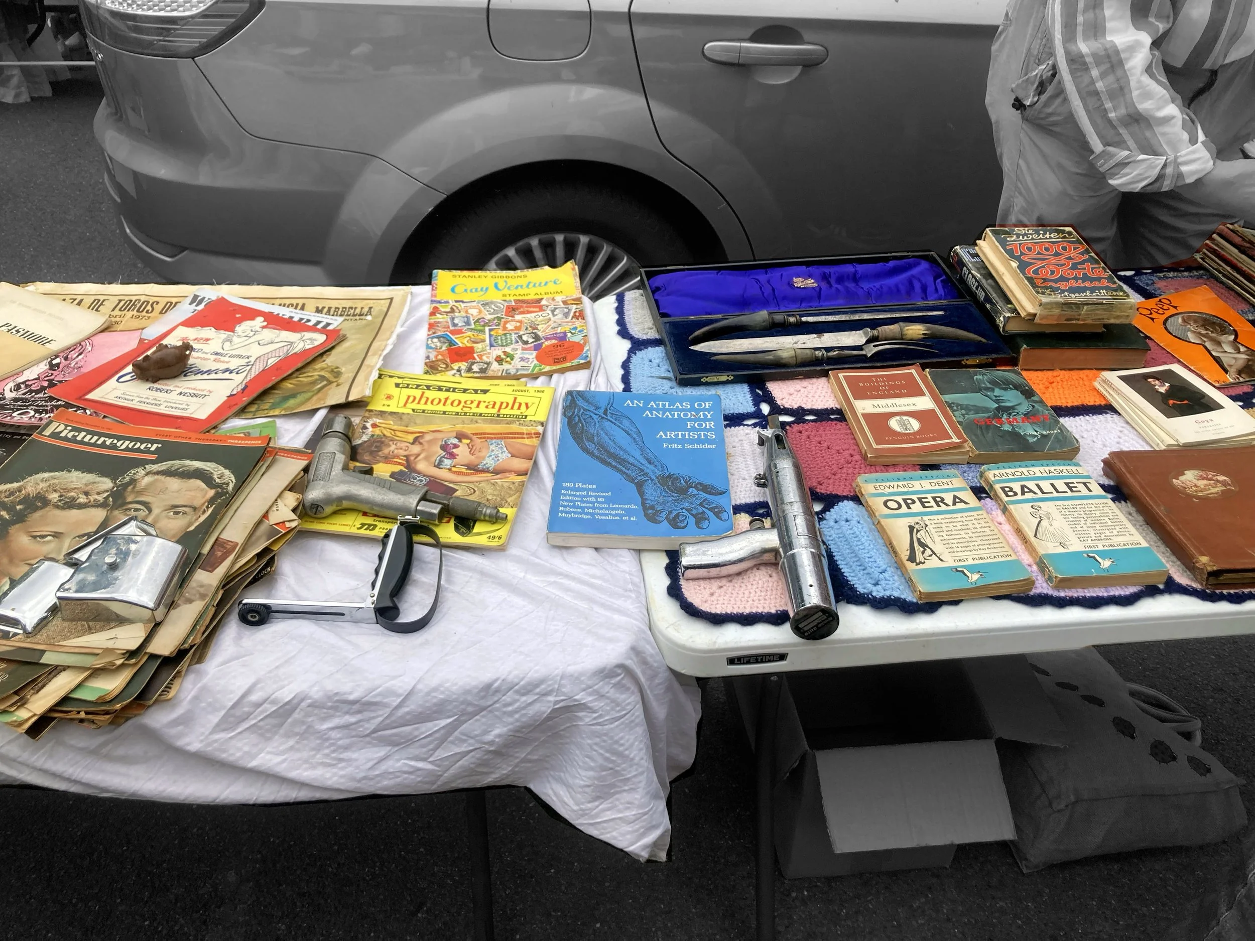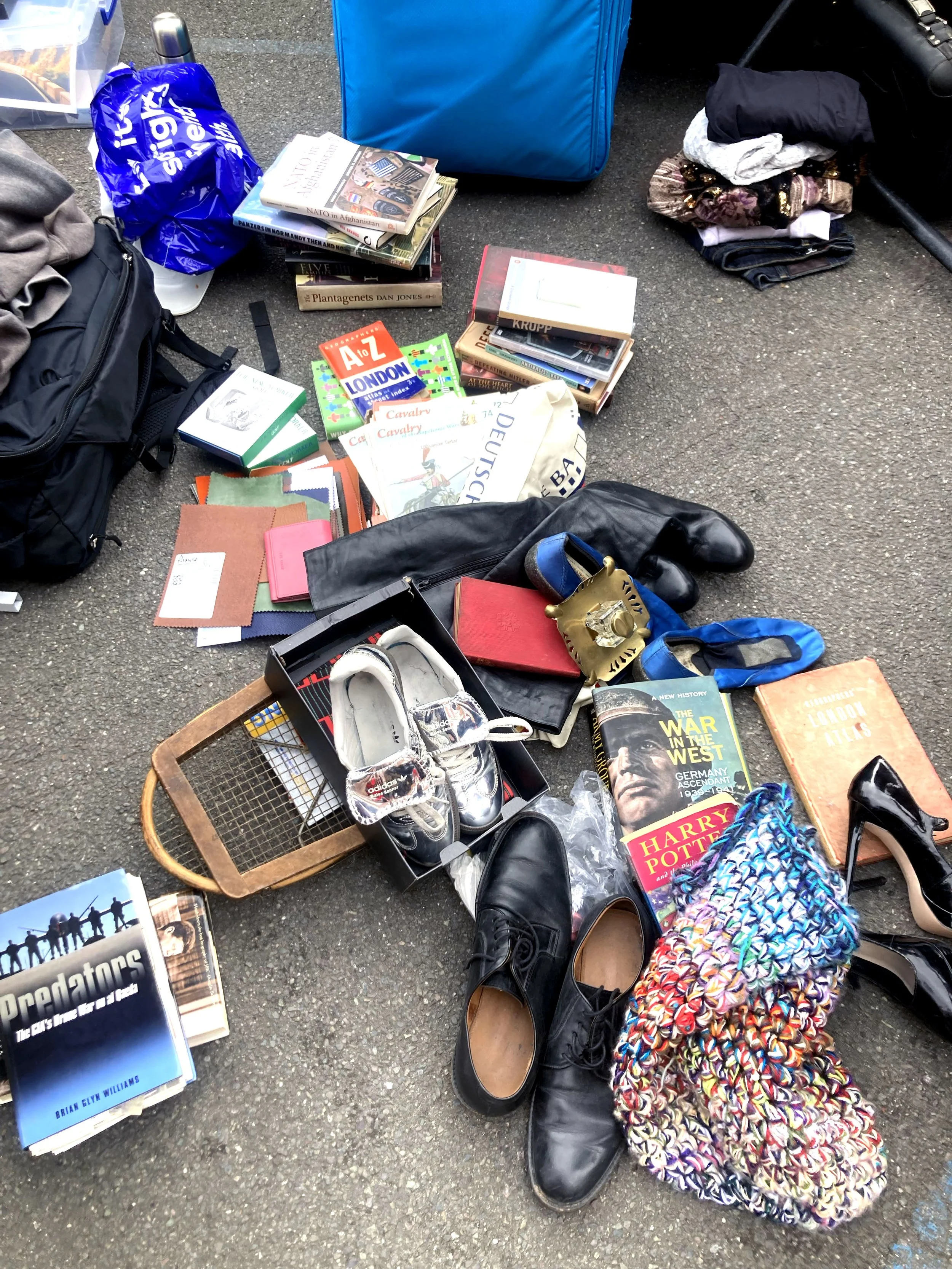 We made a sign to ‘Carry on the story…’, but Tonisha pointed out it would be hard to write on, and even though we knew the written element wouldn’t work, we did it in a not very thought-out way. The key findings from running the stall were that the written element wasn’t working as predicted, but also when we tried to tell the story verbally. My conclusion is that ordinary items don’t tend to need a story; the pace was completely off for the dynamic momentum of the carboot, and people weren’t expecting to interact in that way (artistically). We had one storytelling interaction with a woman who wanted to tell us about her pet frog.