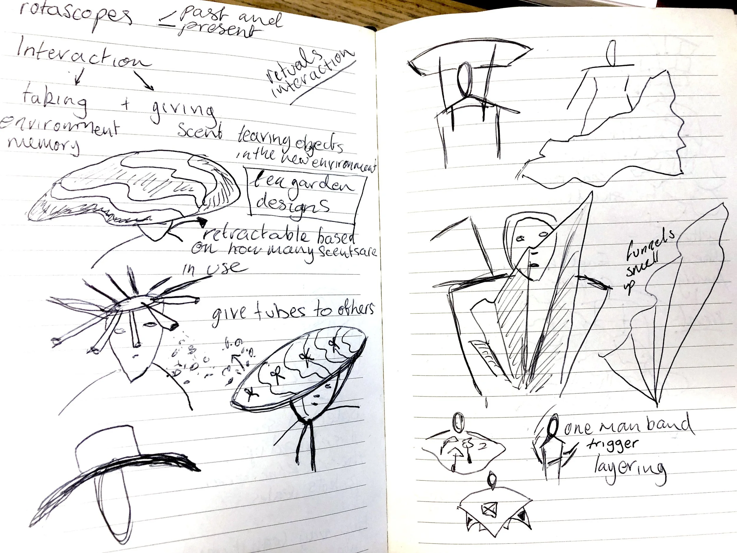 We took photos and videos, drew and mind-mapped with the others. Mainly struck with a sense of vertigo, the movement of the bridge in the wind, the motion of the river and the architecture gave quite a weird feeling that was interesting. reflecting the vestibular sense and proprioception in an arm cuff, which would sway with movement and be attracted to other cuff wearers when nearby. I unfortunately wasn’t there for the presentation due to work commitments, but I heard feedback was that there was too much going on with the two senses.