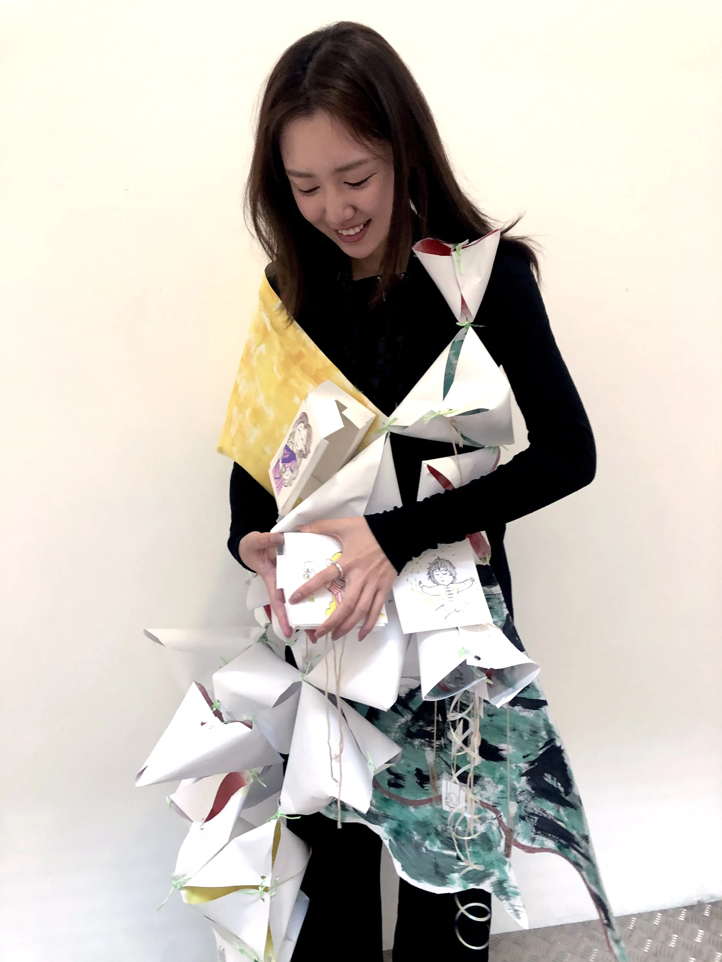 I felt it was important for our design to reflect the three cultures of the group and the history of the tea trade, crossing China, India and England. So, I fashioned the main body of the wearable jacket into three distinct parts influenced by the store's design, cultural costumes, and tea farming. Lancy and Shivangi made the technical pop-out functions, and Yiyao made the drawn elements of the evoked memories.