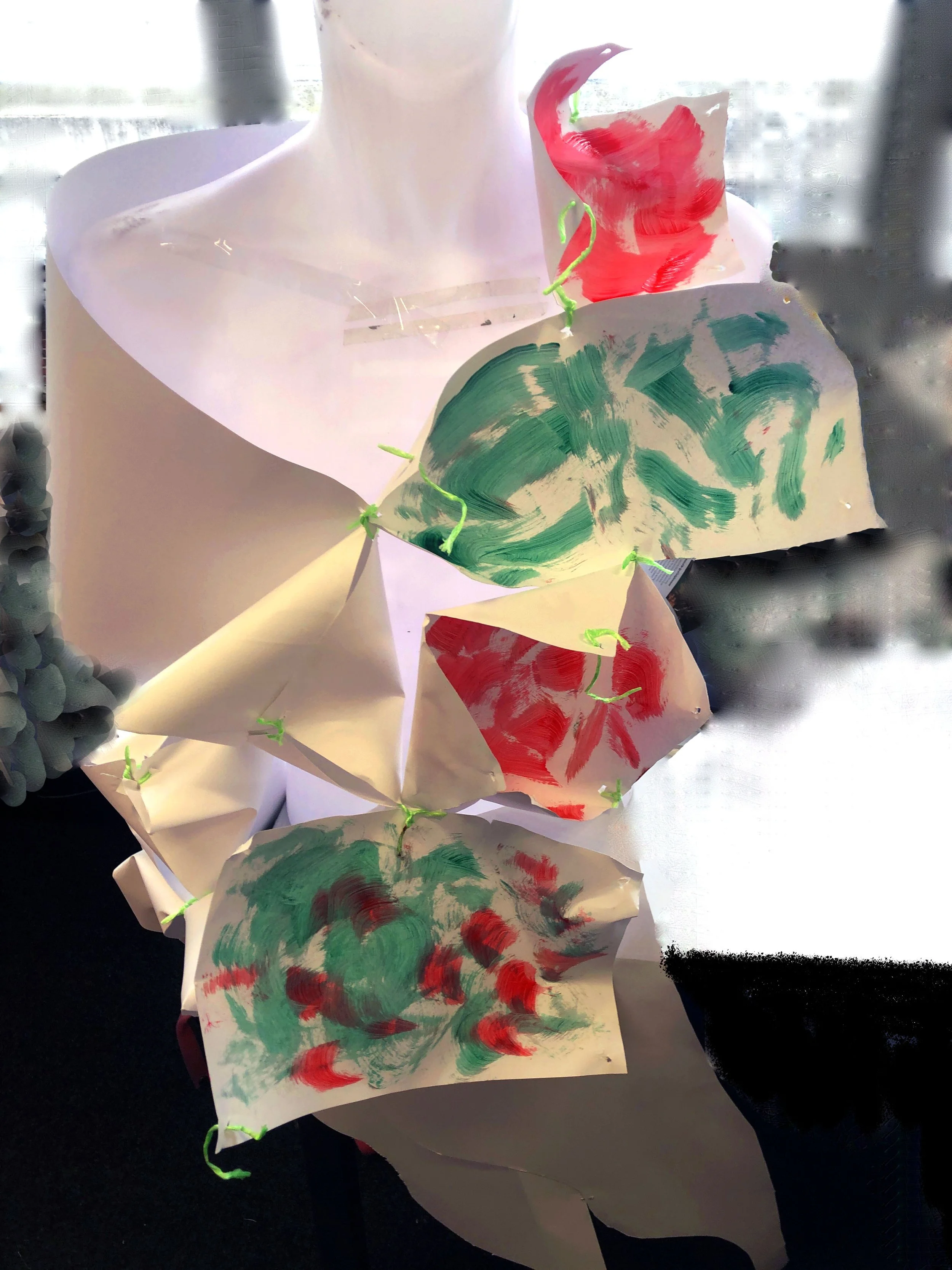 We chose to reflect on the sense of smell and its relation to the Proustian effect (evoking memory from smell) (Proust,1913). The design we then made consisted of a jacket that the wearer could create memory capsules that could be opened. The scent of that moment would explode with little mementoes to evoke the memory. Friends and family could make capsules for each other to remember them, and one could link particular memories together grouped by colour and design.